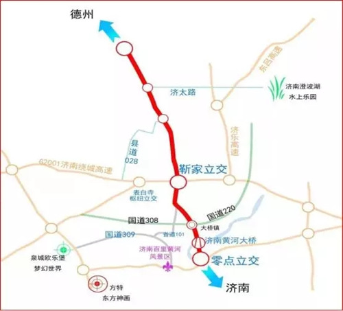 沿線居民和企業(yè)通過靳家互通立交往東直達(dá)遙墻國際機(jī)場、連接濟(jì)樂和濟(jì)東高速,往西連接青銀直通京福、濟(jì)聊高速,極大地方便了黃河北地區(qū)市民出行。