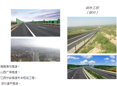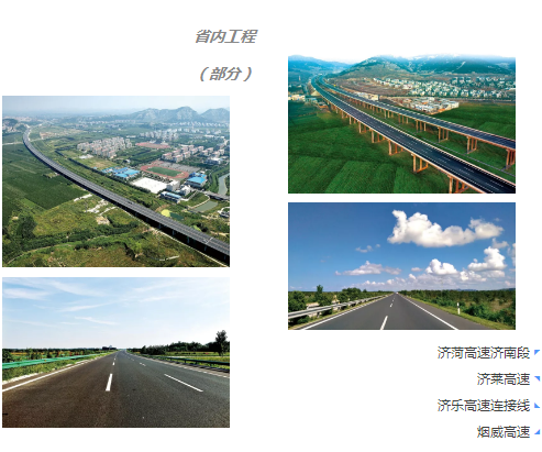 此外,還承建了濟青高速、濟聊高速、石黃高速、濟南繞城高速、濟菏高速、煙威高速以及海南海屯高速、深圳清平高速公路、山西廣渾高速、內蒙國道110線等多條高速公路項目及省內濟廣高速濟南連接線、大澗溝互通立交、段店立交橋、玫瑰湖大橋等的建設。