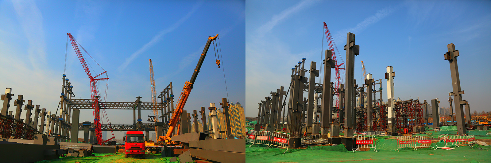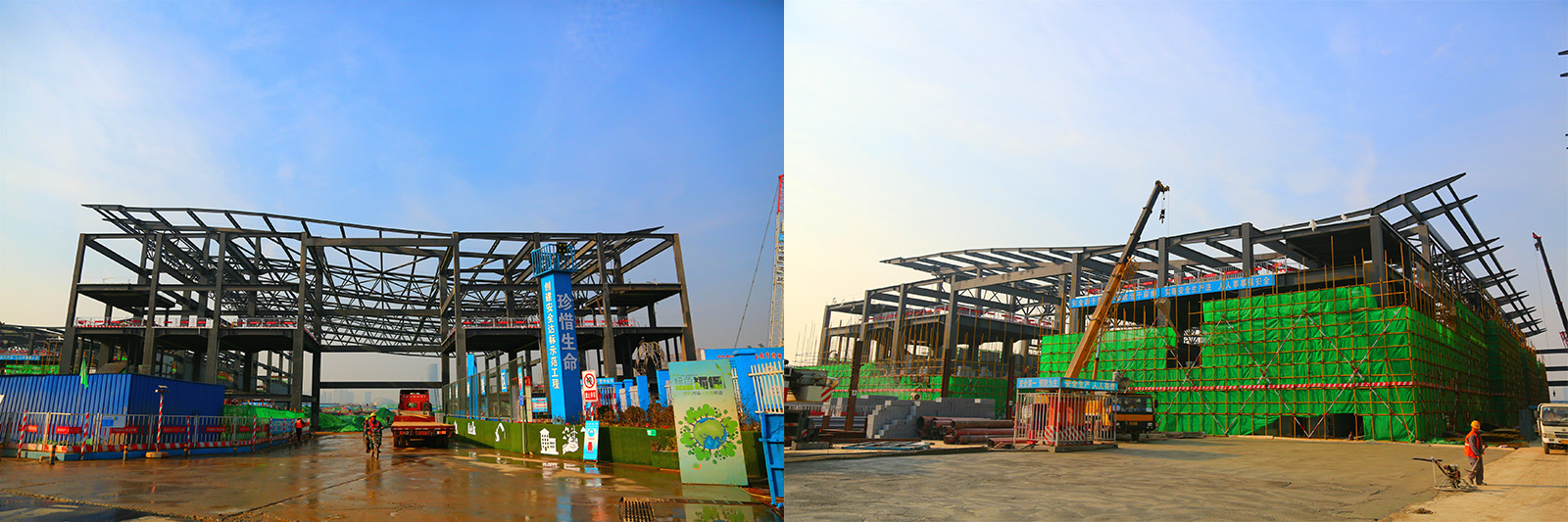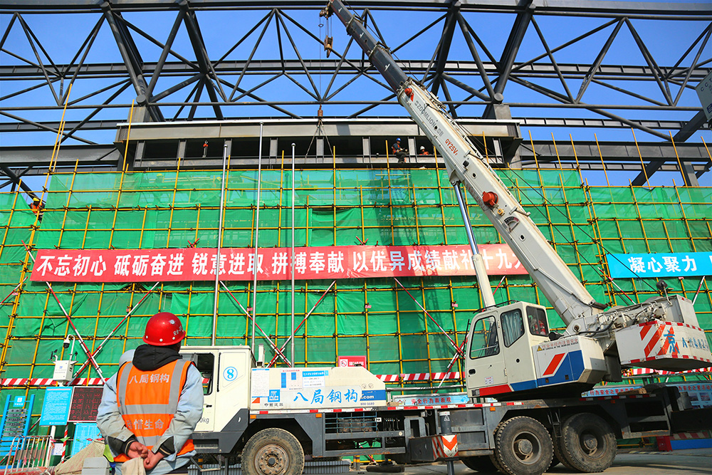 一號至三號展館鋼結構吊裝進行中