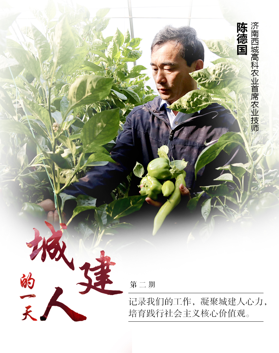 陳德國,現任濟南城市建設集團所屬濟南西城高科農業發展有限公司首席農業技師。2000年,帶頭建起商河縣玉皇廟鎮第一批高溫大棚。2011年,在濟南市菜椒評比大賽獲得菜椒王特等獎。2014年7月進入高科公司工作,歷任技術員、園區副主任,生產部技術總監。2017年獲得濟南市勞動模范稱號,2018年獲得山東省勞動模范稱號。