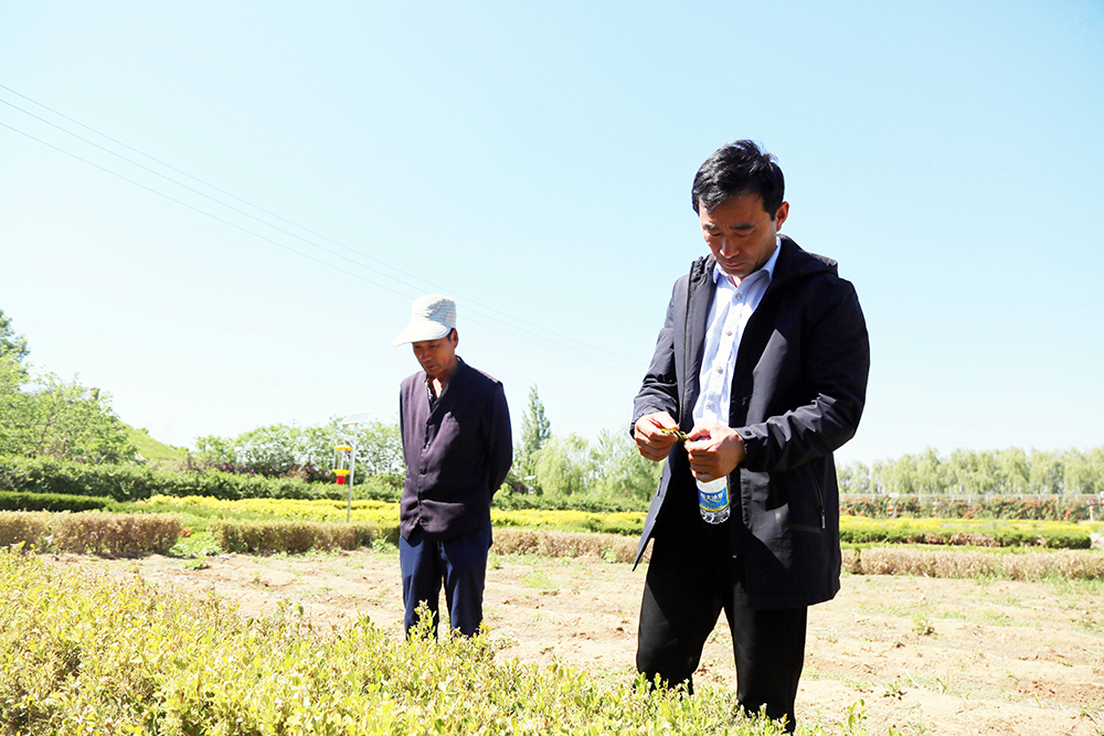 14:00去往連棟溫室的路上,陳德國碰到了園林區的一位同事,向他反映了部分苗木的病蟲害問題,陳德國隨即與同事實地察看了病蟲害情況,制定了應對方案。防患于未然,哪怕碰到一點小問題也不大意拖延,這是陳德國的一貫作風。
