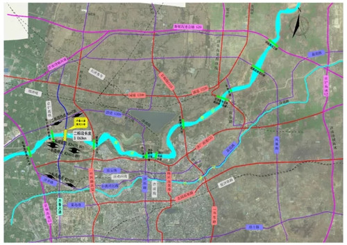 兩座大橋均按照雙向八車道一級(jí)公路標(biāo)準(zhǔn)建設(shè),兼顧城市主干路功能,設(shè)計(jì)速度60公里/小時(shí),跨黃段橋梁范圍為公軌合建的橋梁形式,中間預(yù)留城市軌道交通空間,滿足城市軌道交通縱斷面相關(guān)技術(shù)條件。