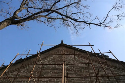 由于季節和溫度原因,古建的恢復修繕工作(濕作業)目前已經進入“冬歇期”,春節后將全面恢復施工,保證今年五一前如期完工。