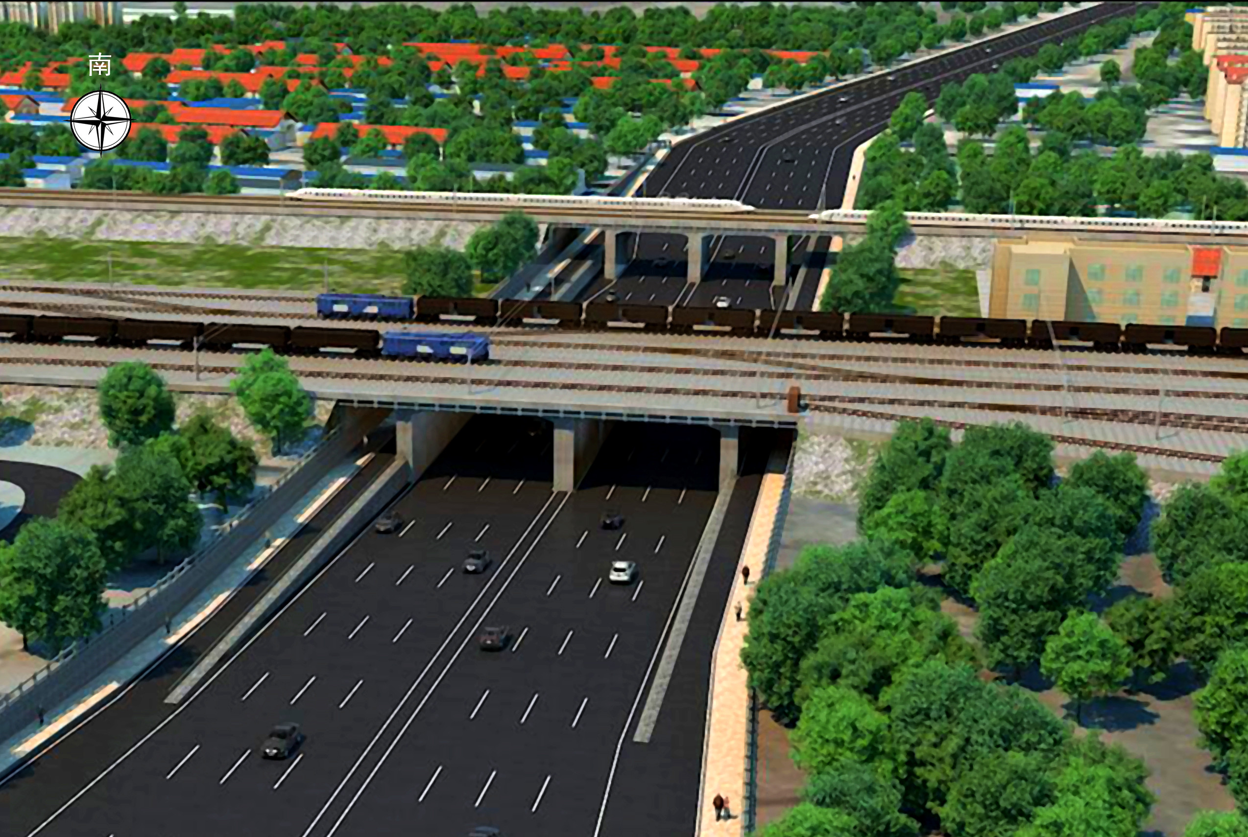 "車腳山隧道洞口效果圖"與"鳳凰路穿跨膠濟(jì)鐵路效果圖"
