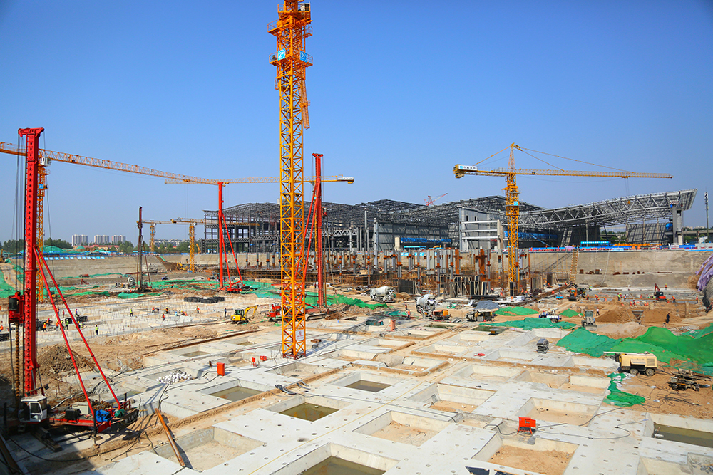 西部會展中心車庫施工全面展開,展館顯雛形似泉水流動