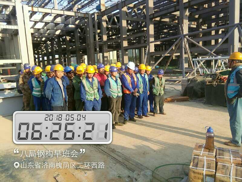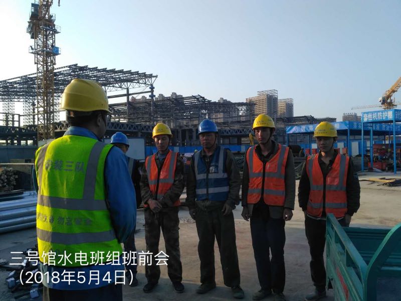 為確保項目建設有序推進,項目部不但充分利用現在施工黃金季晚上加班加點趕工期,還通過早班會制度對員工進行當天工作任務目標下達與安全文明教育。“會展中心項目部共有20多個班組,每天早上7點進場前,都會以班組為單位召開早班會,針對當天的生產任務安排、安全文明教育等事項進行宣貫,確保每個人都能明確任務目標。同時,早班會的時間也是員工們對工作技巧、困難相互交流的好機會,能發現并解決問題,查究短板不足,提高了整體工作效率。”項目現場負責人介紹道。