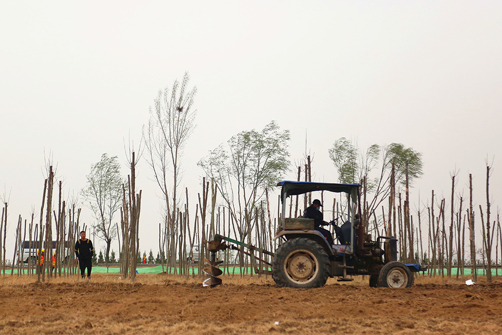 負(fù)責(zé)項(xiàng)目具體建設(shè)的匯友園林公司在接到工作任務(wù)后,迅速響應(yīng),3月24日全面調(diào)度,組建成立了40人的項(xiàng)目部,3月26日正式進(jìn)場(chǎng)施工。截至目前,項(xiàng)目已搭建完成辦公室、會(huì)議室、宿舍、廁所等辦公配套設(shè)施,已進(jìn)揚(yáng)大型挖掘機(jī)5臺(tái)、小型挖掘機(jī)10臺(tái)、控坑機(jī)6臺(tái)、旋耕梨5臺(tái)、吊車(chē)3臺(tái)、水車(chē)5部。在300余人施工隊(duì)伍的奮力推進(jìn)下,目前已整地15000平米、挖樹(shù)坑12000個(gè)、栽苗1500棵。近期,計(jì)劃5天內(nèi)鋪設(shè)管道5000米,6天挖坑30000個(gè),10天栽苗40000棵(309北側(cè)20米及北岸未定)。