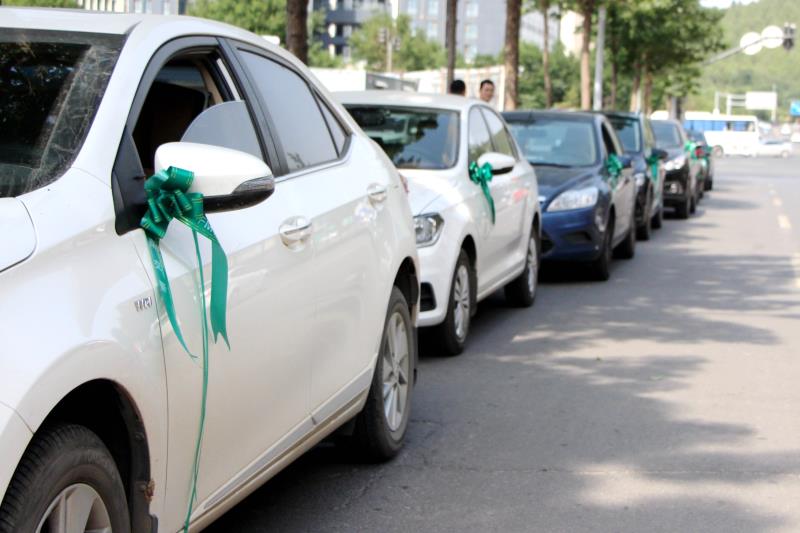 6月6日上午,濟南市政公用資產管理運營有限公司成立了綠絲帶愛心送考志愿者小分隊,公司的十多位員工給自己的私家車系上了綠絲帶,在中高考期間的上班路上,為考生們愛心送考。在中高考期間,他們將對考生招手即停,保證不拒載,安全、準時將考生送達考場。