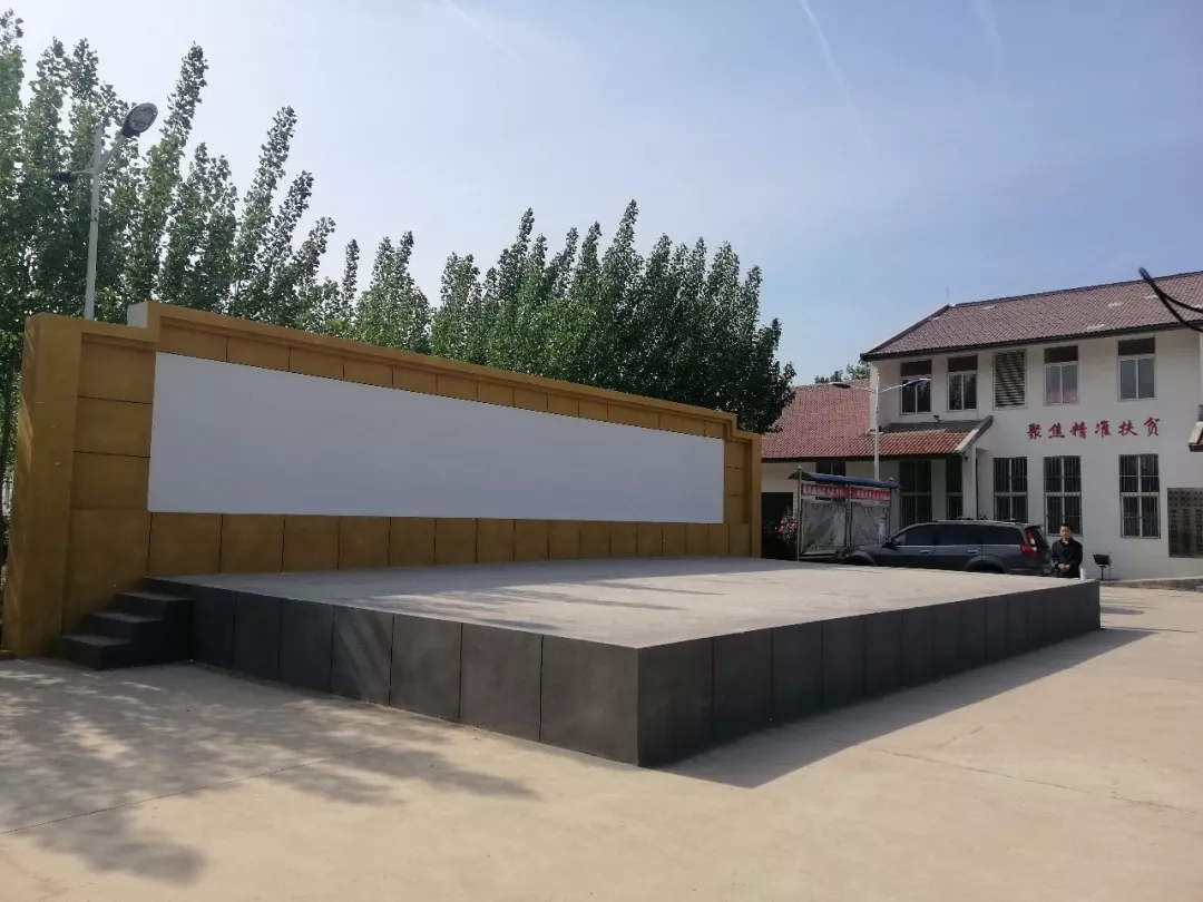 村委會辦公樓前,新建成的鄉村大舞臺即將投入使用。除了脫貧致富提升村民物質生活水平,張慶紅還積極協調各種資源,不斷努力提升村民精神文化生活水平。近年來,村里通過墻繪、宣傳板等宣傳孝道,評比“文明家庭”“好婆婆”“好媳婦”等,并成立紅白理事會,倡導文明、節儉新風。同時,在集團和各相關單位大力支持下,先后開展“一元愛”、“金暉助老”、公益崗、留守兒童支教、扶貧公益晚會、送戲下鄉等系列活動。