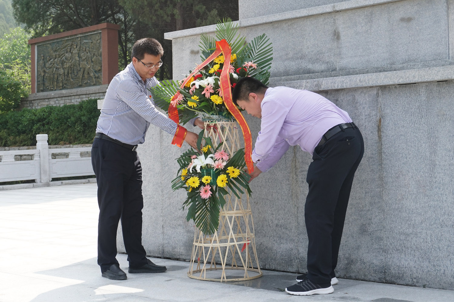 隨后,在初心廣場,在鮮紅的黨旗下,全體黨員重溫入黨誓詞。鏗鏘有力的誓言在大峰山久久回蕩,充分展現(xiàn)了全體黨員干部堅守初心、忠誠于黨、團結(jié)奉獻的堅定信念,并到大峰山革命烈士陵園,向烈士敬獻了花籃,全體黨員干部面向莊嚴的紀念碑鞠躬默哀,深刻感受革命先輩斷頭流血的忘我精神,以及在國與家、生與死的考驗面前對崇高革命信仰的堅守與執(zhí)著。