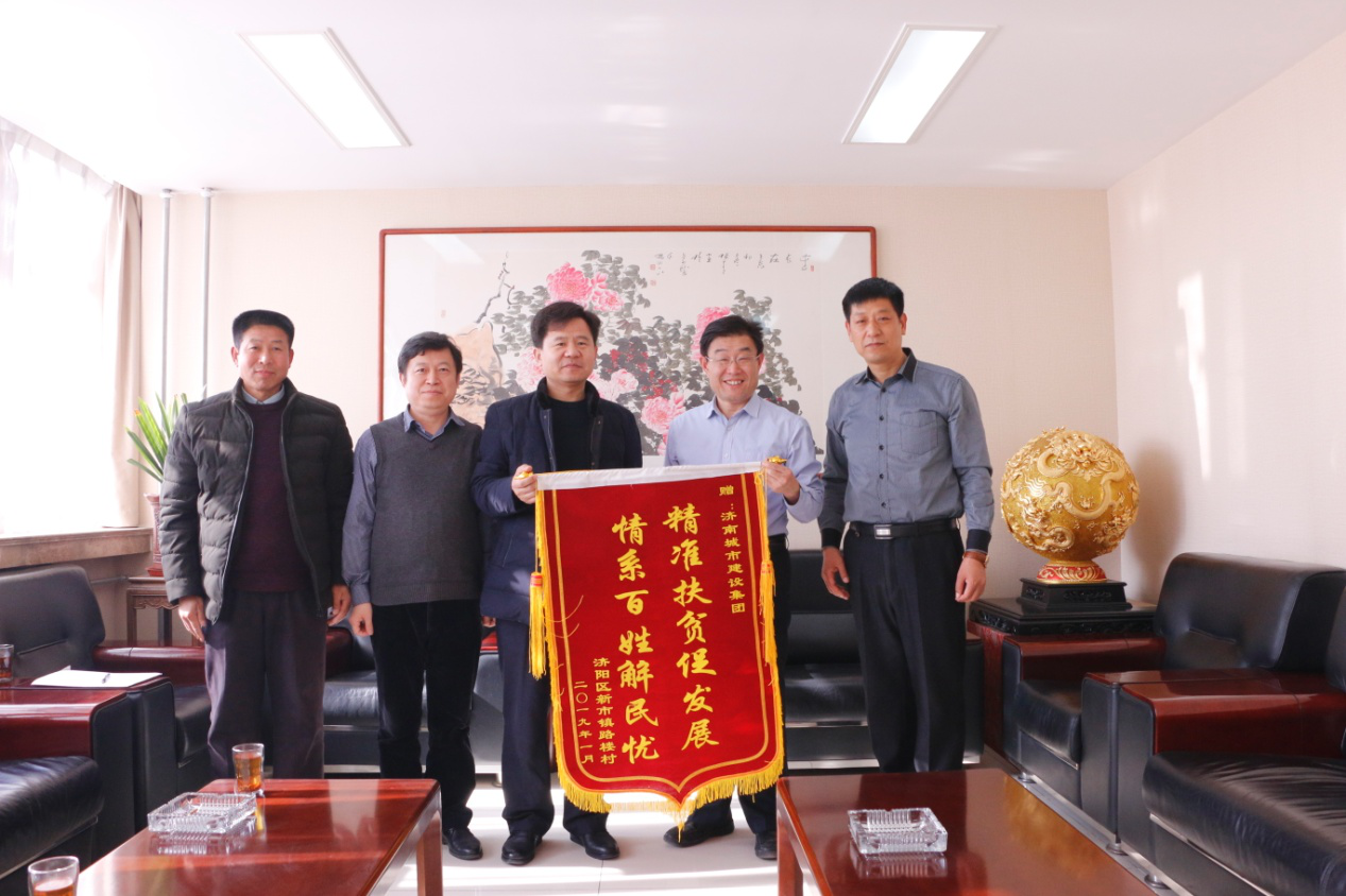 1月25日,濟陽區新市鎮黨委副書記王勇、鎮扶貧辦主任劉俊青、路樓村支部書記路和勇、路樓村“第一書記”張慶紅一行到濟南城市建設集團就幫扶工作進行回訪,并為集團送來錦旗,集團副總經理安玉坤、集團辦公室副主任徐峰參加活動。
