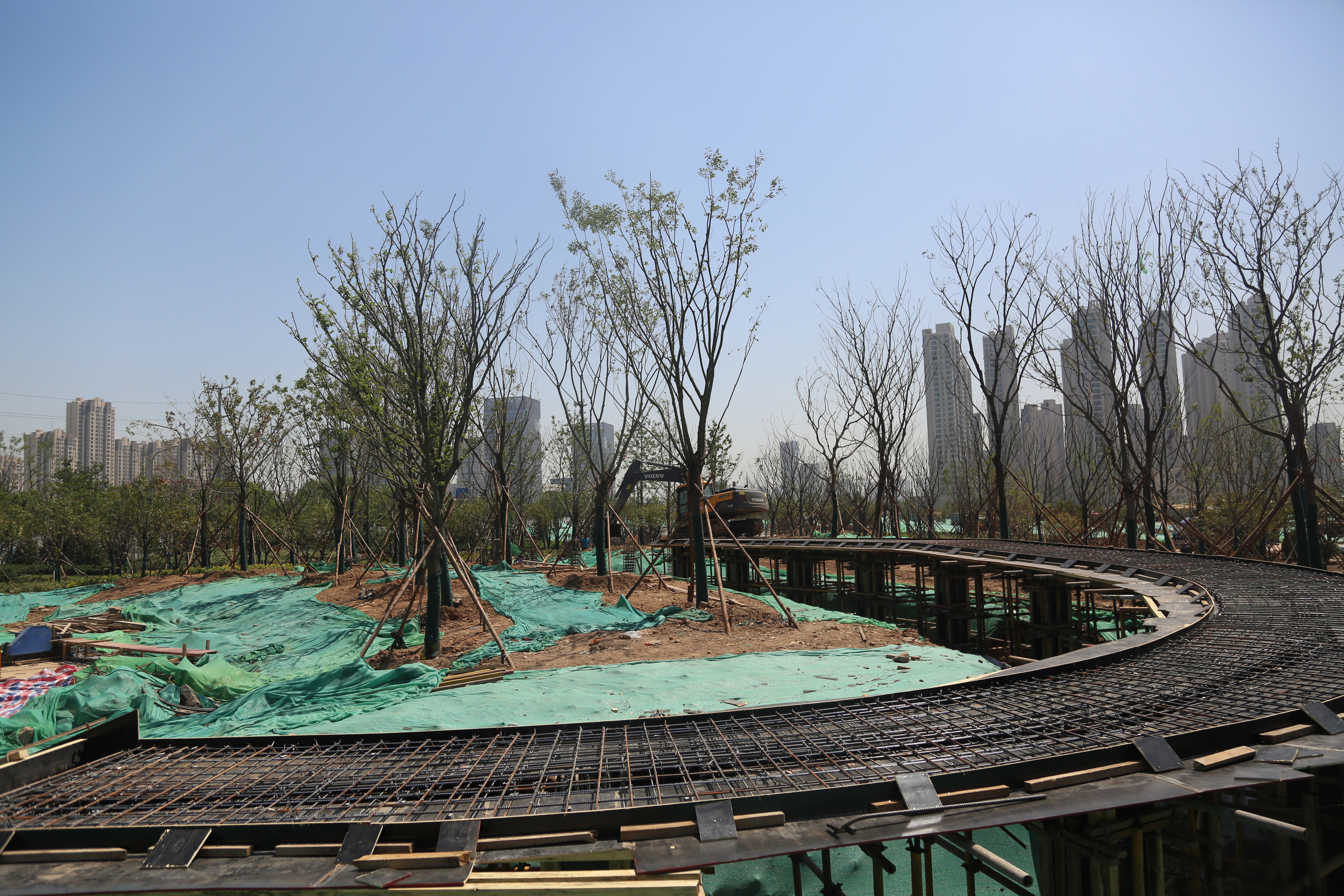 6月底具備初步景觀效果,7月將對(duì)湖區(qū)注水
