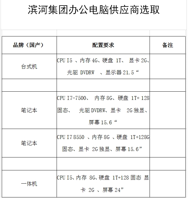現(xiàn)對集團辦公電腦采購選取供應(yīng)商進(jìn)行詢價,有關(guān)事項通知如下,歡迎各單位參加報價。