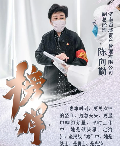 “疫情面前嚴防死守,不放過任何一個細節(jié),所有一切都是為了國有資產(chǎn)的安全。”作為濟南西城資產(chǎn)管理有限公司負責人,在疫情防控初期,陳向勤臨危不亂、從容指揮,她認真學習各級精神指示和決策部署,以“明確責任、聯(lián)防聯(lián)控”為主基調(diào),親自調(diào)度指揮,率先組織成立疫情處置工作領(lǐng)導小組,緊急出臺《新型冠狀病毒肺炎疫情防控工作操作指引(試行)》、《新型冠狀病毒感染的肺炎疫情處置預案》等防控工作指導性文件。