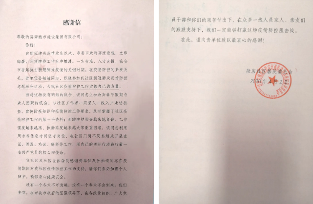 近日,一封來自槐蔭區(qū)段店社區(qū)居民委員會(huì)的感謝信發(fā)至濟(jì)南城市建設(shè)集團(tuán),感謝信的“主角”是集團(tuán)所屬華誼兄弟(濟(jì)南)電影城投資開發(fā)有限公司的孫袖清同志。新型冠狀病毒肺炎疫情發(fā)生以來,孫袖清放棄春節(jié)假期和周末休息時(shí)間,個(gè)人主動(dòng)聯(lián)系報(bào)名,積極參與社區(qū)疫情防控志愿服務(wù)工作,以實(shí)際行動(dòng)彰顯黨員和建設(shè)集團(tuán)人責(zé)任擔(dān)當(dāng),用無私奉獻(xiàn)展現(xiàn)一名“80后”的青春力量,與社區(qū)工作人員共同筑牢社區(qū)疫情防控安全線。