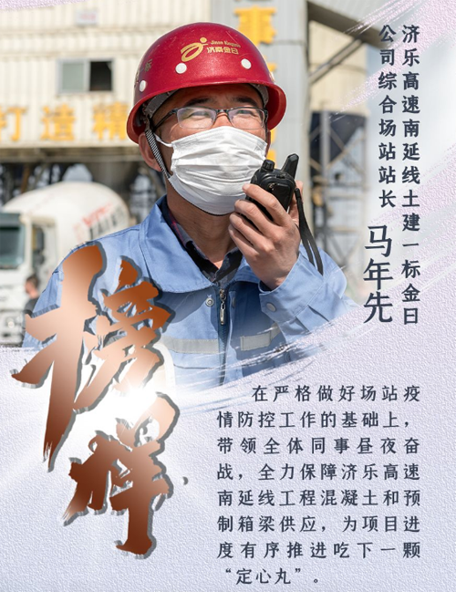 新型冠狀病毒肺炎疫情發生以來,濟南城市建設集團認真貫徹落實中央、省、市關于疫情防控和復工復產的決策部署,上下一心、眾志成城,全體干部職工恪盡職守、扎根一線,全員全力投入到疫情防控阻擊戰中。期間,涌現出了眾多先進典型和感人故事,用實際行動詮釋了建設集團人的精神風貌和責任擔當。我們在集團宣傳平臺《榜樣》欄目,推出系列人物報道,挖掘宣傳一線典型,提振士氣、凝聚力量,激勵我們繼續前行,堅決打贏疫情防控的人民戰爭、總體戰、阻擊戰。