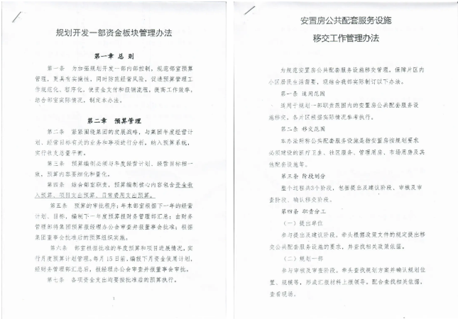 目前已初步形成《安置區(qū)公共服務(wù)配套設(shè)施管理辦法》、《資金支付流程及制度》等5項(xiàng)工作的流程、制度、模板。