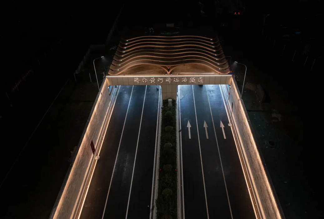 濟南黃河濟濼路隧道設計方案以黃河文化根脈為基,黃河之“光”為“場”,融合黃河歷史、文化、自然、藝術等表現黃河兩岸是我家。“黃河根脈歲歲安瀾”主題設計定位為城河相融,動靜相融,蘊含“天人合一”的設計理念,讓黃河隧道藝術空間景觀和自然互為補充。設計中借黃河水紋傳統紋樣,將黃河文化與自然生態中的場地、色彩、光影結合,再造了黃河地形與黃河流動的自然之美,描繪了新時代黃河畫卷中詩情畫意的城市底蘊。