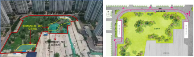 為提高綠化景觀觀賞度,提高居民生活環(huán)境,集團(tuán)工程一部積極對(duì)該地塊進(jìn)行綠化景觀提升及部分改造工作,包括場(chǎng)地平整、垃圾外運(yùn)、播撒草種、圍墻修建、石路攤鋪等。