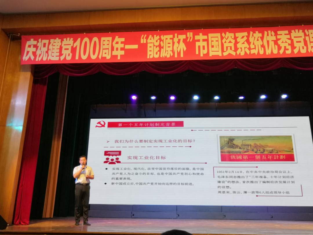 為慶祝中國共產(chǎn)黨成立100周年,扎實(shí)推進(jìn)黨史學(xué)習(xí)教育,6月2日,由濟(jì)南市國資委主辦、濟(jì)南能源集團(tuán)承辦的“能源杯”市國資系統(tǒng)優(yōu)秀黨課匯報展示觀摩會在北郊熱電廠禮堂舉行。集團(tuán)選送黨課《第一個五年計劃》,參加現(xiàn)場觀摩評比并榮獲三等獎。