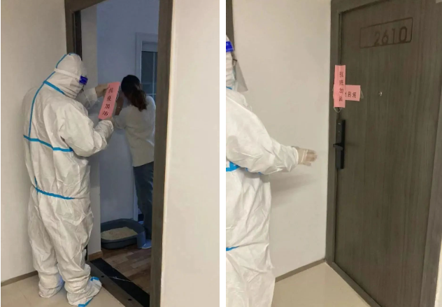 大白手中“抗疫加油”的封條,也讓冰冷的封控平添一絲溫暖。關(guān)上門前,他們用堅(jiān)定的眼神向業(yè)主承諾,無論如何,我們會(huì)一直陪伴著你!共克時(shí)艱,溫暖相伴,讓隔離不隔愛。