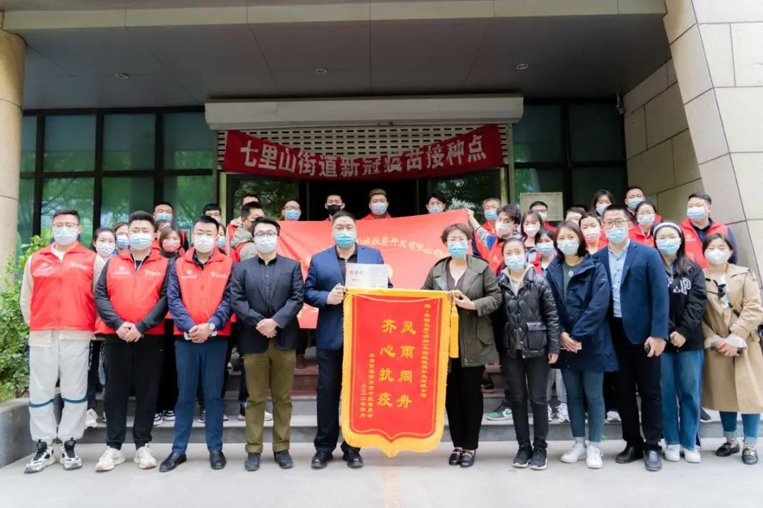 當天下午,第一批由25人組成的公司抗疫青年志愿服務隊常春藤分隊已抵達長清區常春藤社區開展疫情防控志愿服務工作。公司董事長兼總經理伏健、副總經理殷樂到場慰問社區工作人員并分發援助物資。