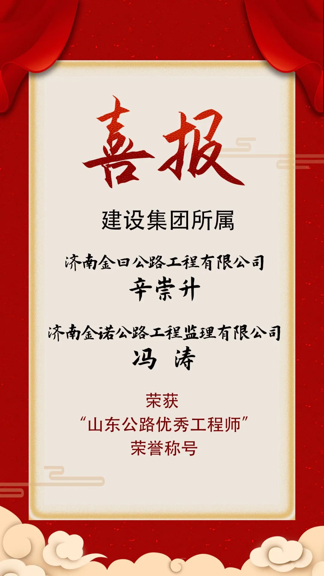 建設集團兩名同志榮獲“山東公路優秀工程師”榮譽稱號