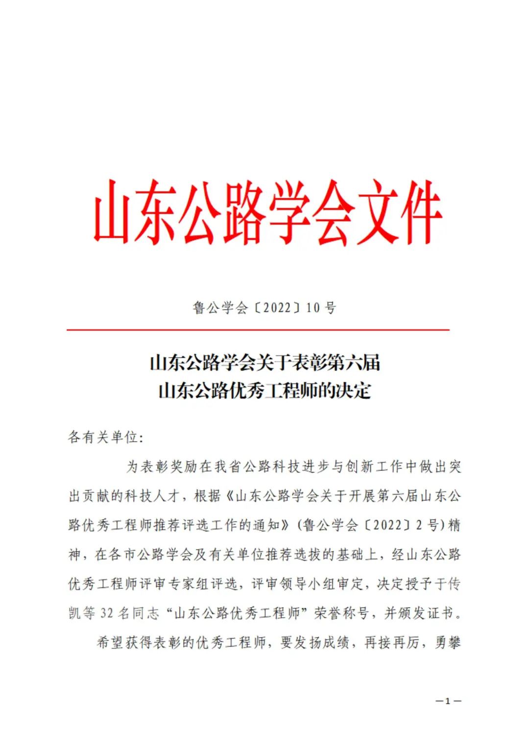 “山東公路優秀工程師”評選活動由山東公路學會組織,每年在全省范圍內評選一次,旨在激勵廣大公路交通科技工作者積極投身山東公路事業,發揚創新、求實、協作、奉獻精神,推動山東省公路交通科技進步和創新。