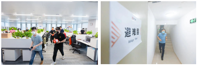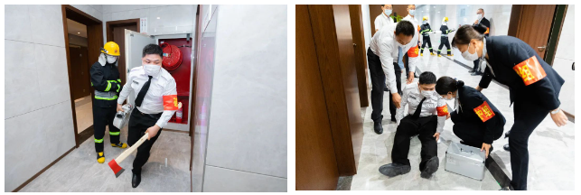 此次消防安全演習共分為樓層火災發生(處置)、消控室指令發布、物業人員到場處置、現場人員疏散、點評總結五個階段進行。旨在通過演習進一步強化員工消防安全意識,熟悉掌握在緊急情況下報警、撲救、救護及逃生方法,提升各責任人熟悉和了解應急組織機構和應急工作流程,強化共同協作,提高應急處置能力,確保全體員工的生命安全。