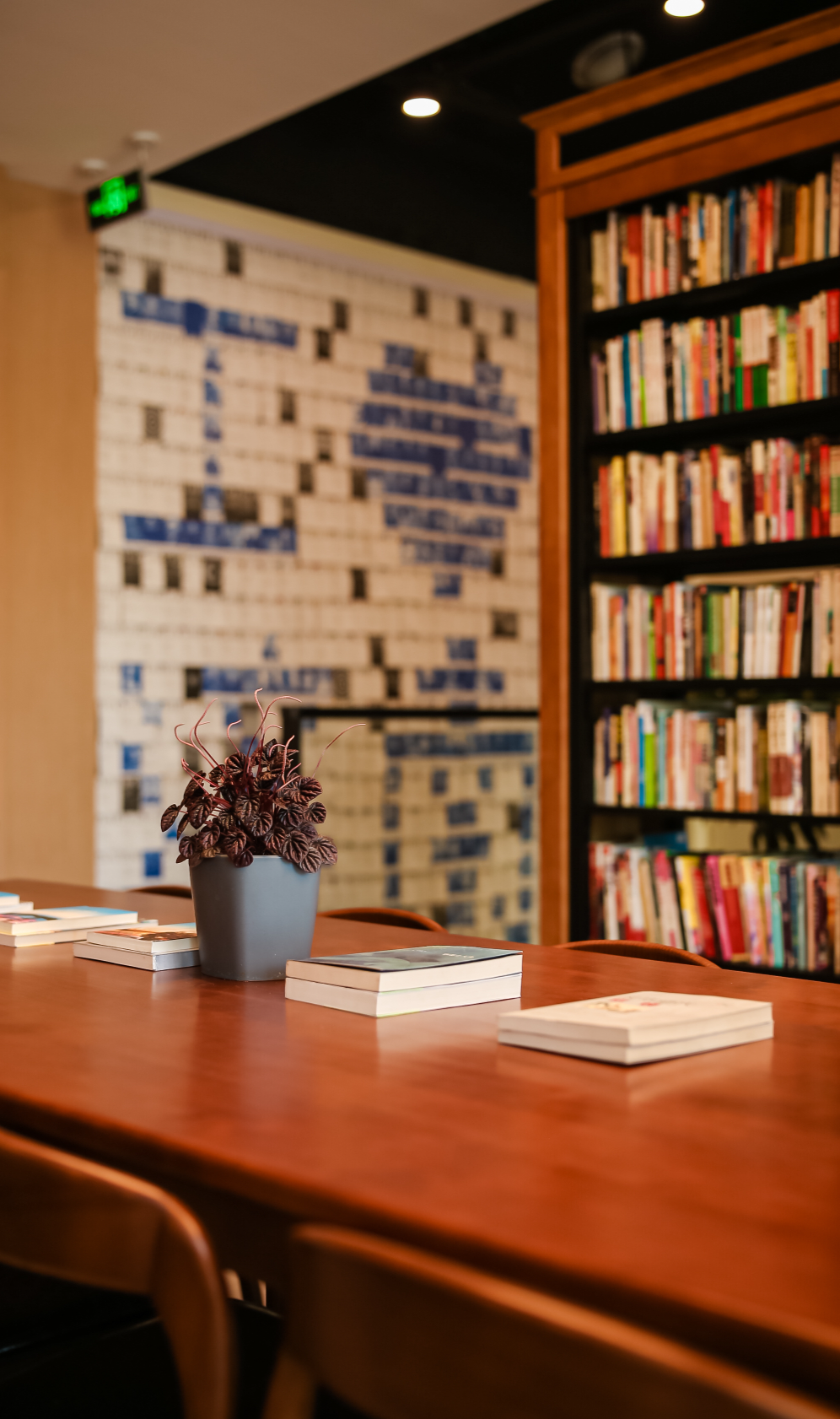 “泉城書房”楊柳春風分館,設有上下兩層空間,藏書豐盛,品類繁多,涵蓋政治、經(jīng)濟、法律、文學、藝術、哲學等多個領域。