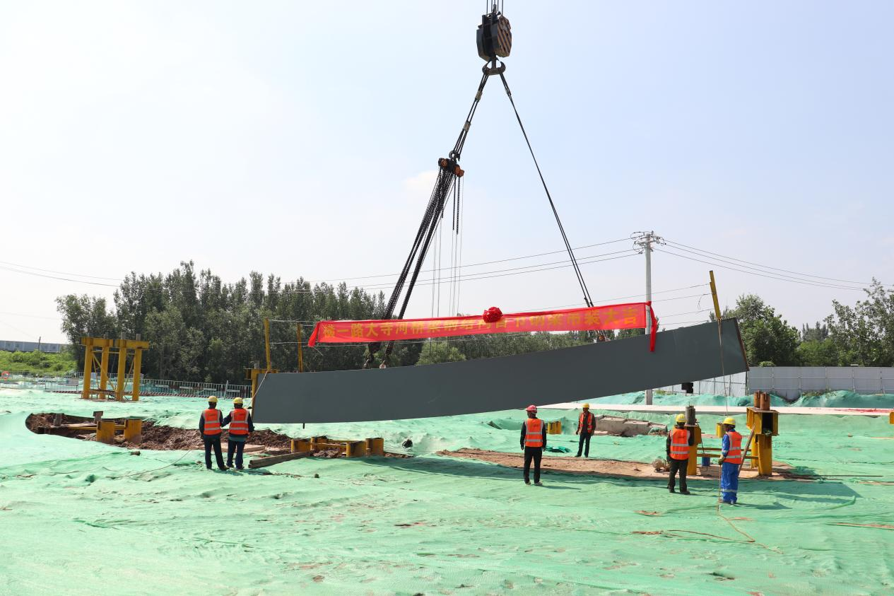 起步區橫一路大寺河橋梁項目首節鋼梁吊裝順利完成, 進入上部結構施工階段