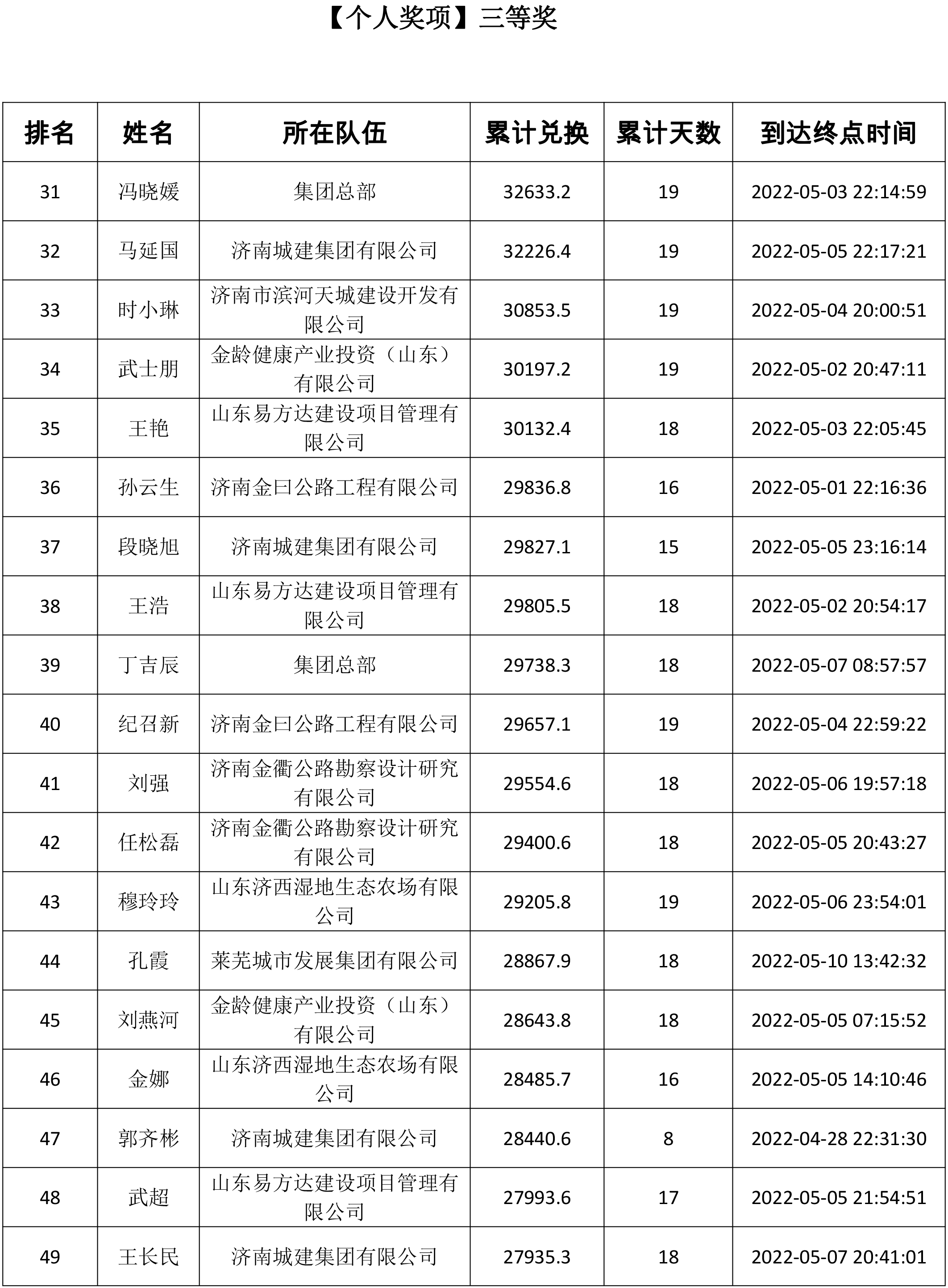 由共青團濟南城市建設集團有限公司委員會主辦,共青團濟南金曰公路工程有限公司委員會、濟南新城文化傳媒有限公司承辦的“青春有夢 建設無疆”——職工線上健步走活動于5月13日正式落下帷幕。此次活動共持續19天,參與人數達1716人。
