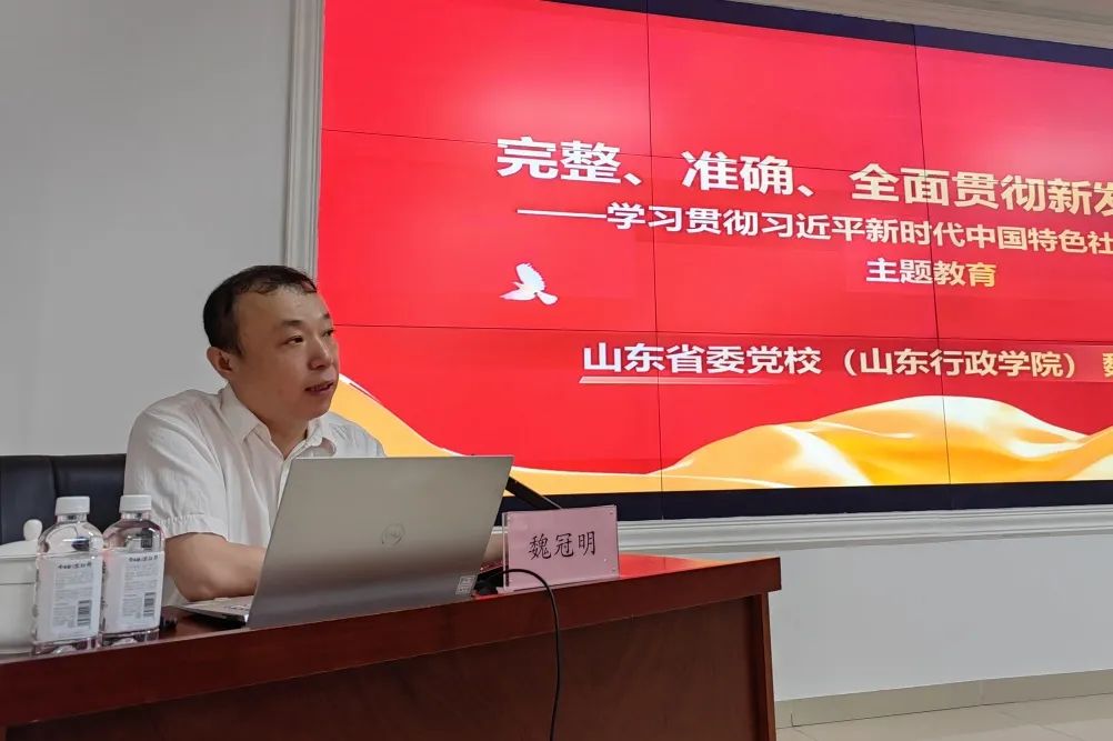 活動邀請省委黨校中共黨史教研部副教授、山東省習近平新時代中國特色社會主義思想研究中心研究員魏冠明進行專題授課,魏冠明以“完整、準確、全面貫徹新發展理念--學習貫徹習近平新時代中國特色社會主義思想主題教育”為主題,全面解讀了新發展理念的內涵要義、政策啟示和重大意義,推動黨員干部進一步學懂弄通做實習近平新時代中國特色社會主義思想。