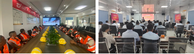 開展安全生產月警示教育活動,組織觀看《生命無價》、《生命重于泰山》等安全警示教育視頻,切實提高一線參建管理人員及工人安全自覺性、積極性、主動性。