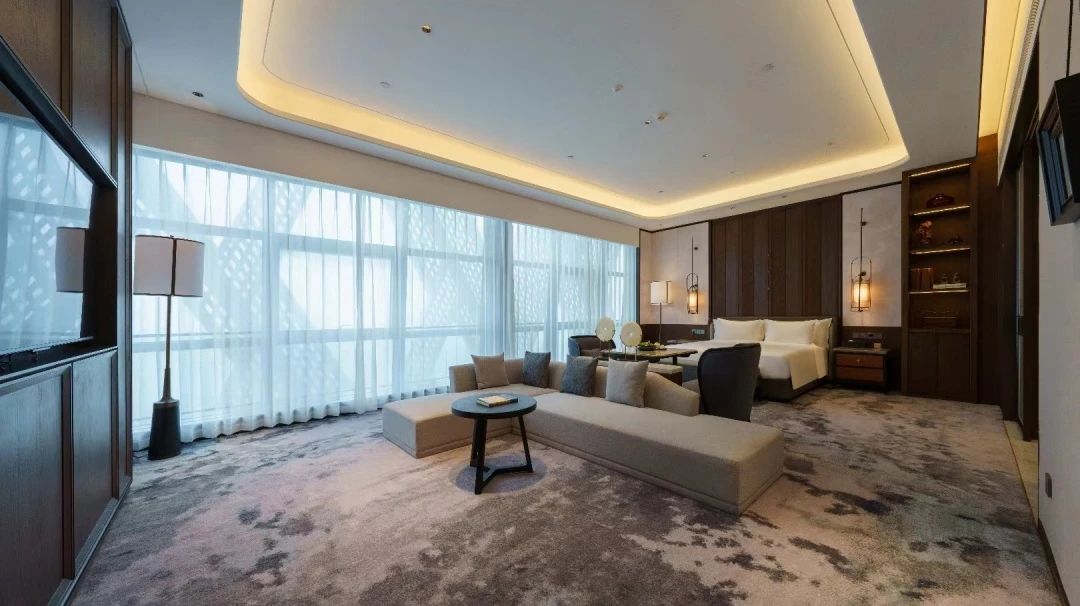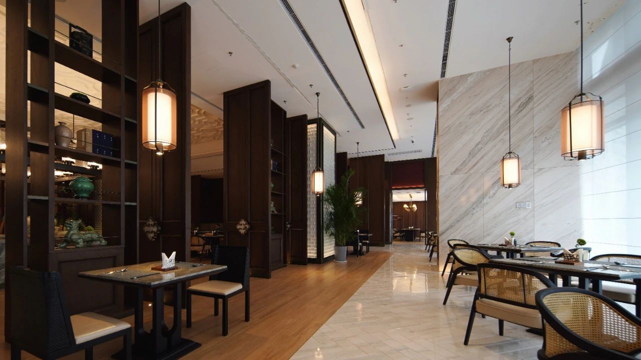酒店以宋式美學為設計特色,酒店大堂的“云起·鵲華秋色”,餐飲區的“云深·華屋滿朋”,宴會廳的“云上·宴賓會友”,客房的“云歸·曉鏡畫屏”全面詮釋了宋式美學的匠心獨運,將精致和典雅發揮得淋漓盡致。“中式、簡約、現代、綠色”是酒店的四大核心理念,可以讓來賓感受到濃厚的中國傳統文化及細致入微、始終如一的待客之道。