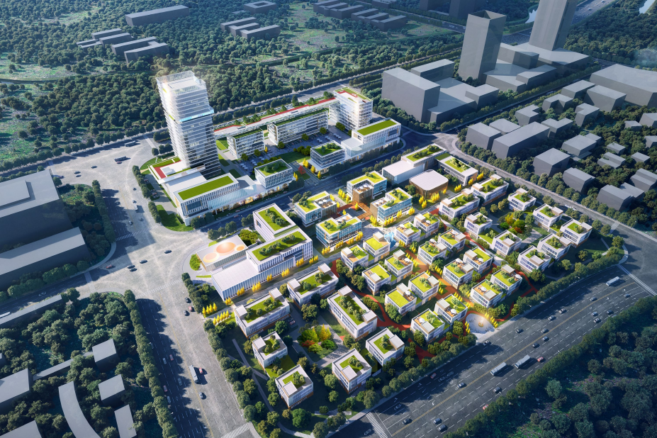 項(xiàng)目引景入院,打造辦公、休閑、社交、生活于一體的生態(tài)園區(qū)、花園式辦公。采用“前庭后院、連續(xù)景觀,以小窺大、移步異景”等筑園手法,自然與都市之間相互交融,融入自然的花園式辦公體驗(yàn)。