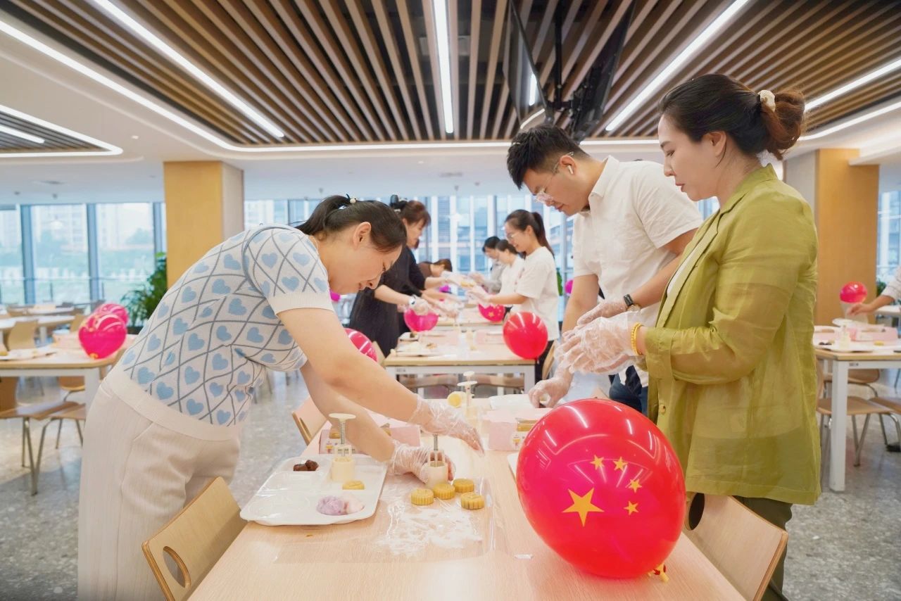 活動(dòng)現(xiàn)場(chǎng),糕點(diǎn)師傅悉心指導(dǎo),員工們踴躍參與,并交流分享月餅的制作方法和文化內(nèi)涵,在動(dòng)手制作中感受傳統(tǒng)文化魅力和濃厚的節(jié)日氛圍。