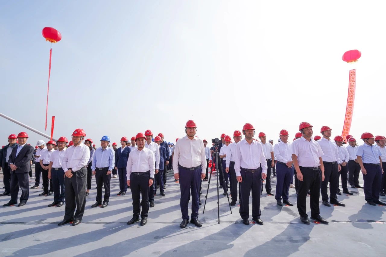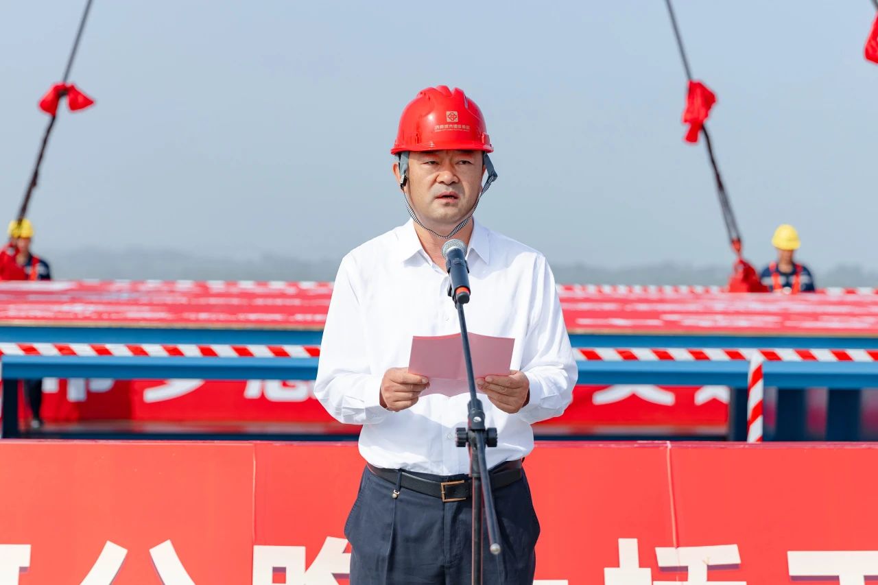 建設集團黨委書記、董事長史海成宣布G104京嵐線濟南黃河公路大橋主橋合龍。