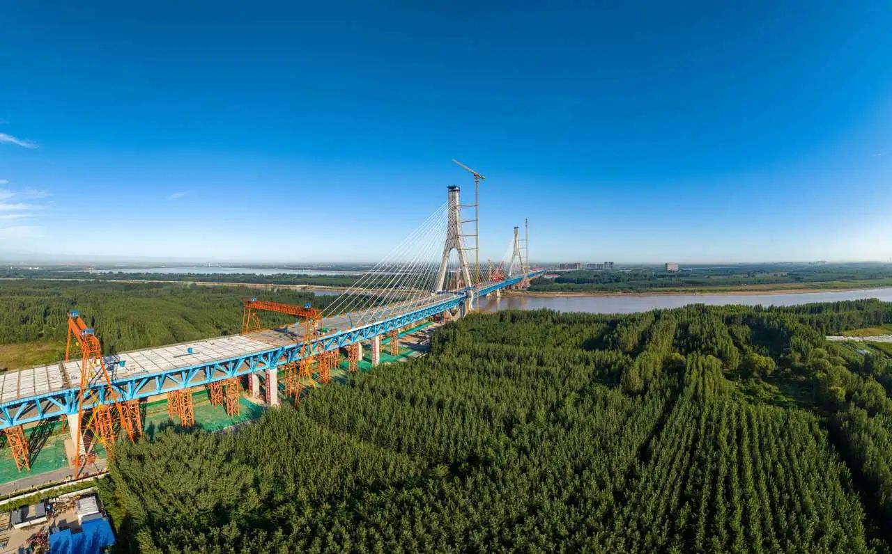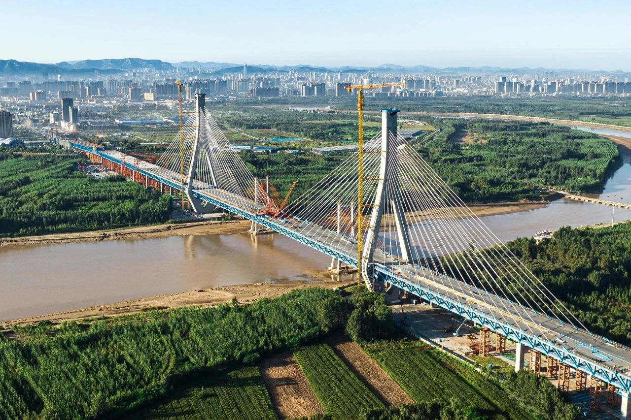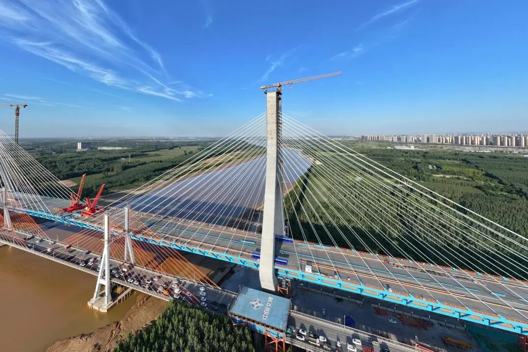 G104京嵐線濟南黃河公路大橋工程是連接濟南新舊動能轉換起步區與老城區的南北向主干道,是濟南市“四橋四隧”規劃建設的重要組成部分,對助推濟南加速邁向黃河時代、促進起步區經濟社會發展具有重要意義。項目采用雙塔雙索面公軌合建鋼桁梁斜拉橋形式建造,全長7.748公里,主線橋梁工程長6.87公里,建設工期48個月,計劃2025年6月底通車。