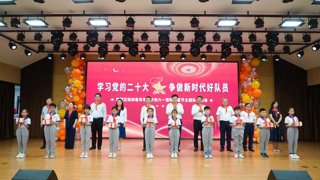 活動現(xiàn)場,與會嘉賓們?yōu)樾氯腙牭纳傧汝爢T們佩戴了紅領巾,為新建中隊授中隊旗,見證了黨、團、隊三旗傳遞,徐冬梅為孩子們送上了“六一”寄語,建設集團為孩子們贈送了入隊成長禮物。