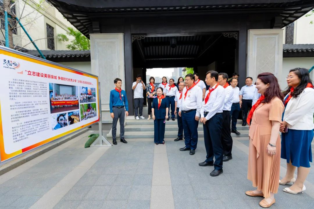 活動結束后,孫常建一行在楊柳春風學校進行了實地參觀調(diào)研,了解了書香校園建設活動,并與孩子們進行了親切交流。孩子們熱情洋溢地介紹了“槐蔭少年說”黨團隊一體化品牌建設活動、“我是黃河岸邊好少年”黃河文化項目化學習特色課程、“我眼中的康養(yǎng)名城、活力槐蔭”畫展和手工展、“家住槐蔭‘育’見成長”教育品牌、學校校訓和南北融合辦學理念等情況,并進行了古箏、寫生、經(jīng)典誦讀等美育教育特色活動表演,美術社團、舞蹈社團、合唱團、足球社團、啦啦隊的成員代表們進行了成果展示。