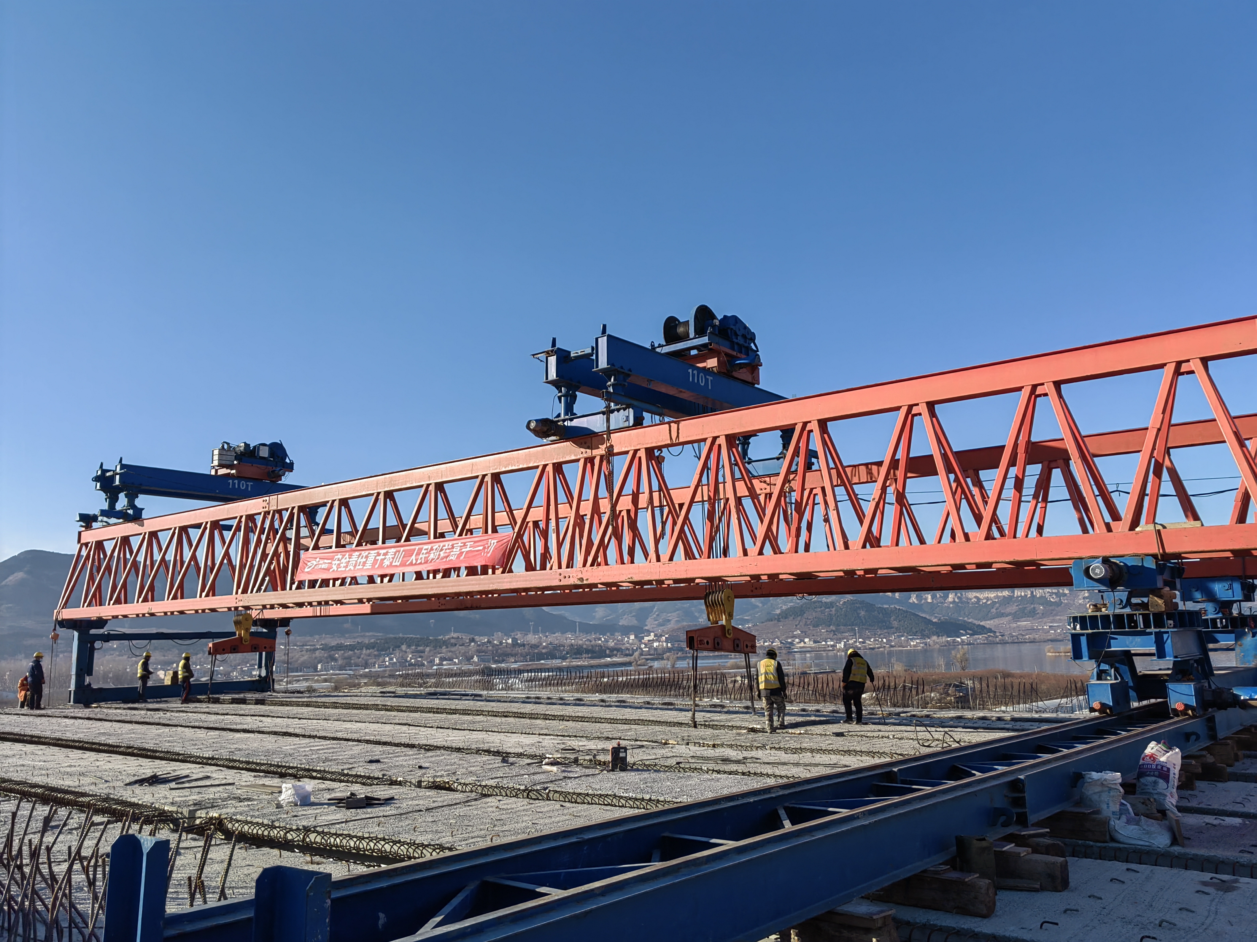 項(xiàng)目部克服老橋拆除、臥虎山水庫水源地保護(hù)、交通導(dǎo)改難度大、地下水位高、土方資源協(xié)調(diào)難度大等不利因素,細(xì)化施工工藝,優(yōu)化施工方案,強(qiáng)化資源配置,僅用時(shí)50天就完成第一階段105片箱梁架設(shè),120天實(shí)現(xiàn)仲宮大橋左幅通車,150天完成全線箱梁280片架設(shè)。