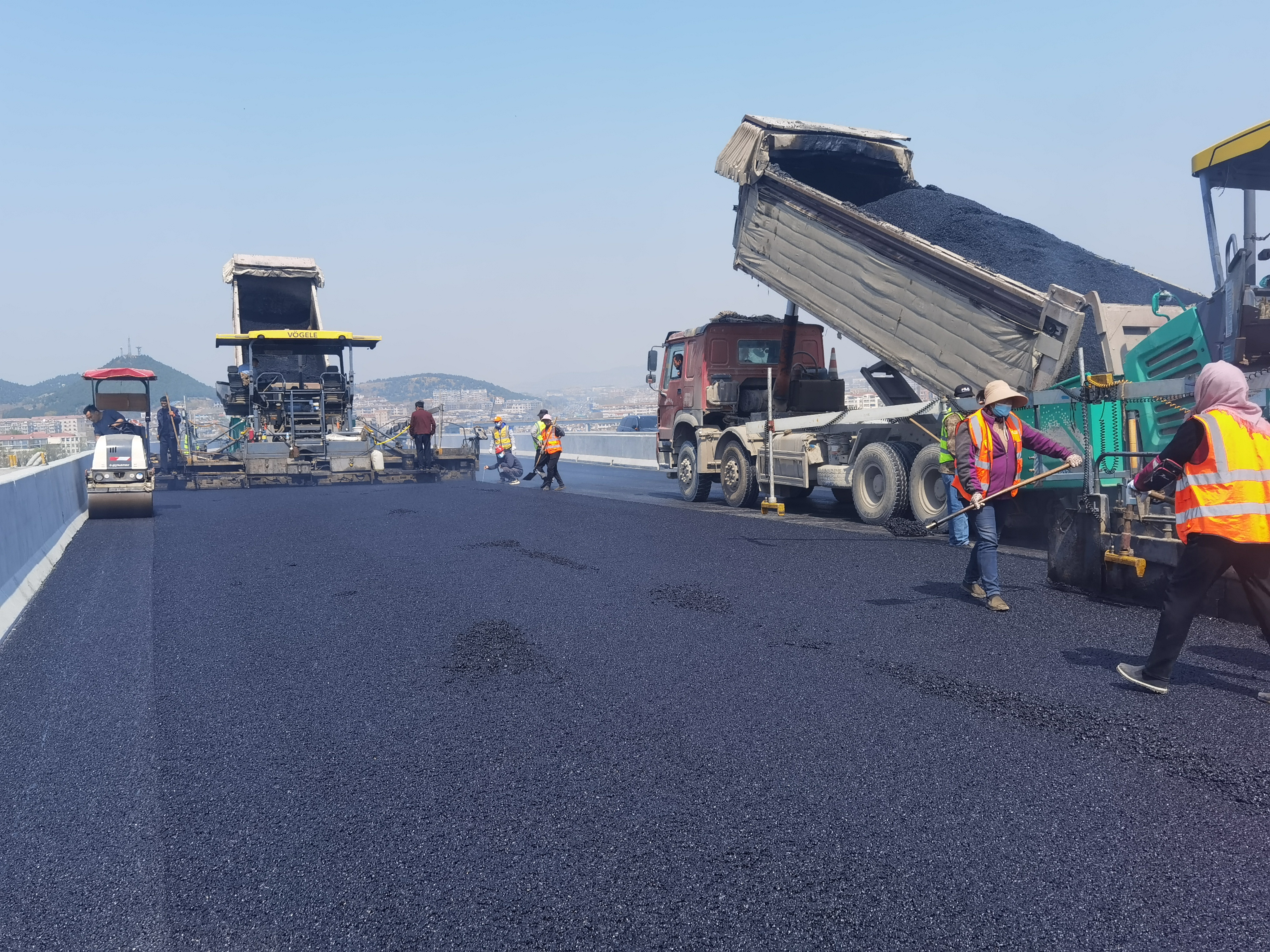 仲宮大橋?qū)挾炔灰唬瑸榇_保瀝青上面層攤鋪的質(zhì)量效果,項(xiàng)目部強(qiáng)化前期籌劃,嚴(yán)把材料質(zhì)量關(guān),對(duì)瀝青混合料的拌合工藝、運(yùn)輸、攤鋪溫度及速度等各個(gè)環(huán)節(jié)做了詳細(xì)部署。施工中做好各環(huán)節(jié)全程監(jiān)控,嚴(yán)格控制瀝青、礦料加熱時(shí)間、溫度、混合料拌和時(shí)間、均勻性、厚度等技術(shù)指標(biāo)。借助機(jī)械指揮官系統(tǒng),實(shí)時(shí)監(jiān)測(cè)攤鋪機(jī)、壓路機(jī)的行進(jìn)速度。復(fù)壓完成后立即組織現(xiàn)場(chǎng)技術(shù)人員使用6m直尺對(duì)上面層平整度進(jìn)行初步檢測(cè),對(duì)輪跡明顯的位置安排壓路機(jī)再次進(jìn)行斜壓處理,以確保上面層平整度符合預(yù)設(shè)目標(biāo),真正做到品質(zhì)“看得見”。經(jīng)現(xiàn)場(chǎng)檢測(cè),上面層平整度為0.6,實(shí)體檢測(cè)項(xiàng)目完全達(dá)到優(yōu)良目標(biāo)。
