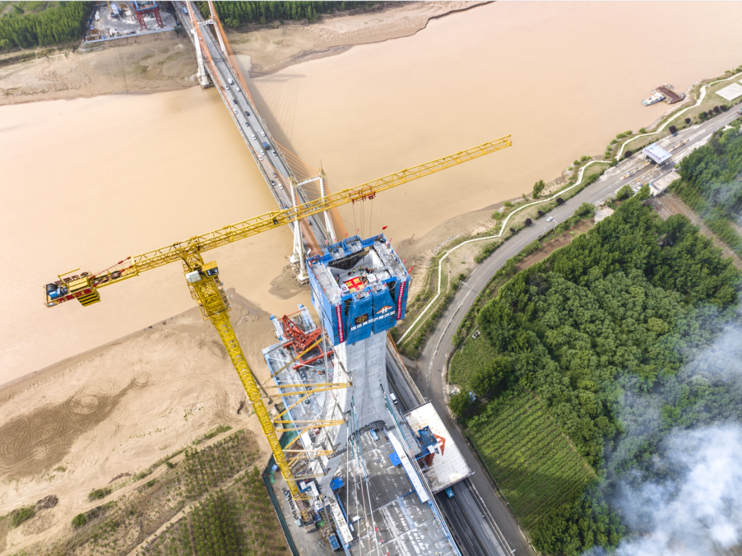 由濟(jì)南城市建設(shè)集團(tuán)投資建設(shè),建設(shè)集團(tuán)所屬濟(jì)南城建集團(tuán)公司參與承建的G104京嵐線濟(jì)南黃河公路大橋擴(kuò)建工程主橋?yàn)殡p塔雙索面公軌兩用鋼桁梁斜拉橋,主跨488米,是黃河上在建最大跨徑公軌兩用斜拉橋。主橋索塔高168.6米,寶瓶形構(gòu)造,造型新穎、施工難度大、技術(shù)要求高。項(xiàng)目部嚴(yán)格按照住建部、省、市危險(xiǎn)性較大的分部分項(xiàng)工程安全管理規(guī)定、危險(xiǎn)性較大的分部分項(xiàng)工程專項(xiàng)施工方案編制指南及相關(guān)要求,成立技術(shù)創(chuàng)新小組、施工部署方案策劃評(píng)審領(lǐng)導(dǎo)小組等組織機(jī)構(gòu),充分調(diào)動(dòng)技術(shù)人員積極性、創(chuàng)造性,編制了《索塔專項(xiàng)施工方案》,并成功應(yīng)用于本工程索塔施工中,達(dá)到安全生產(chǎn)、降本增效的目的,為推動(dòng)項(xiàng)目安全有序建設(shè)蓄勢(shì)賦能。