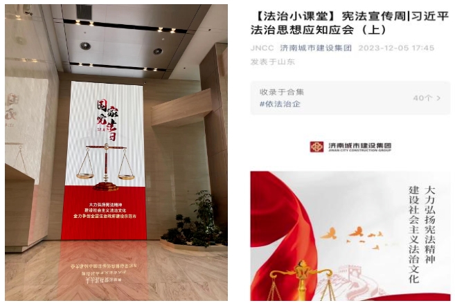 2023年12月1日至7日是全國第六個憲法宣傳周,集團根據(jù)市國資委《濟南市2023年憲法宣傳周、山東省法治宣傳教育月暨爭創(chuàng)全國法治政府建設(shè)示范市集中宣傳活動方案》要求,認真開展了2023年國家憲法宣傳周活動,大力加強習近平法治思想與憲法的學習宣傳,積極引導集團廣大干部職工尊法學法守法用法,推動法治宣傳教育走深走實。