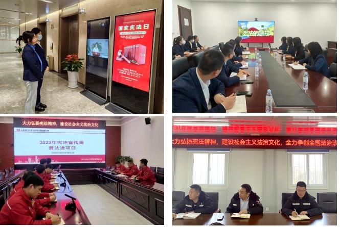 活動期間,集團在宣傳平臺開設(shè)“法治小課堂”欄目,推送《國家憲法日| 憲法和你的一生有什么關(guān)系?》《憲法宣傳周│“憲法知識知多少”專題測試》《憲法宣傳周│習近平法治思想應(yīng)知應(yīng)會(上)》《憲法宣傳周│習近平法治思想應(yīng)知應(yīng)會(下)》《憲法宣傳周│習近平法治思想專題測試》5篇普法推文,并通過集團電子屏投放憲法宣傳海報,營造濃厚活動氛圍。同時,集團積極組織各部室、子公司積極參與2023年全國 “憲法宣傳周”憲法知識網(wǎng)上競答活動,廣泛動員各子公司靈活采用線上、線下相結(jié)合的普法形式,大力加強習近平法治思想與憲法等內(nèi)容的學習宣傳。
