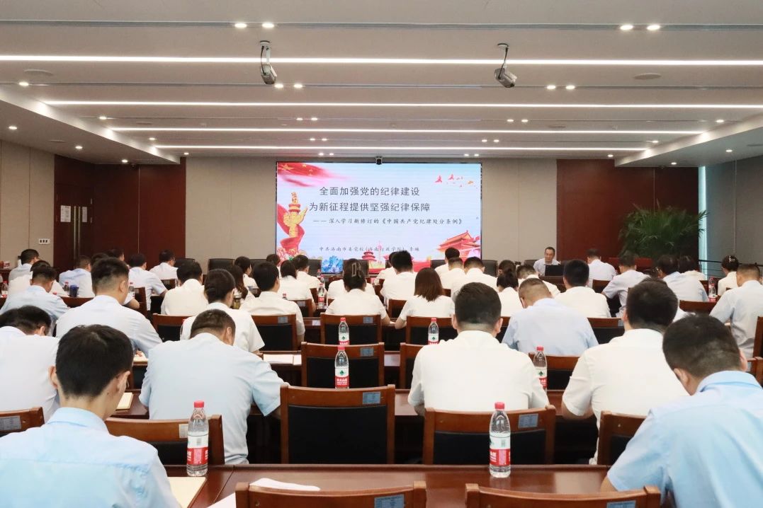 授課老師以《全面加強黨的紀律建設 為新征程提供堅強紀律保障》為題,對新修訂的《中國共產黨紀律處分條例》進行了解讀。課程分為充分認識《條例》修訂的重要意義,深刻理解《條例》修訂的重要亮點、準確把握《條例》修訂的主旨要義、全面重溫《條例》的重要條款、切實抓好《條例》貫徹執行五部分,講解過程中穿插近年來典型違紀違法案例,通過分析具體事實,揭示了違紀違法行為的嚴重后果,為推進全面從嚴治黨、規范黨員干部日常言行提供了遵循。