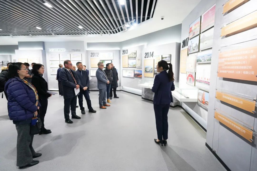 會(huì)前,樂(lè)峰一行參觀了建設(shè)集團(tuán)展廳,了解了集團(tuán)運(yùn)營(yíng)發(fā)展情況與產(chǎn)業(yè)板塊。