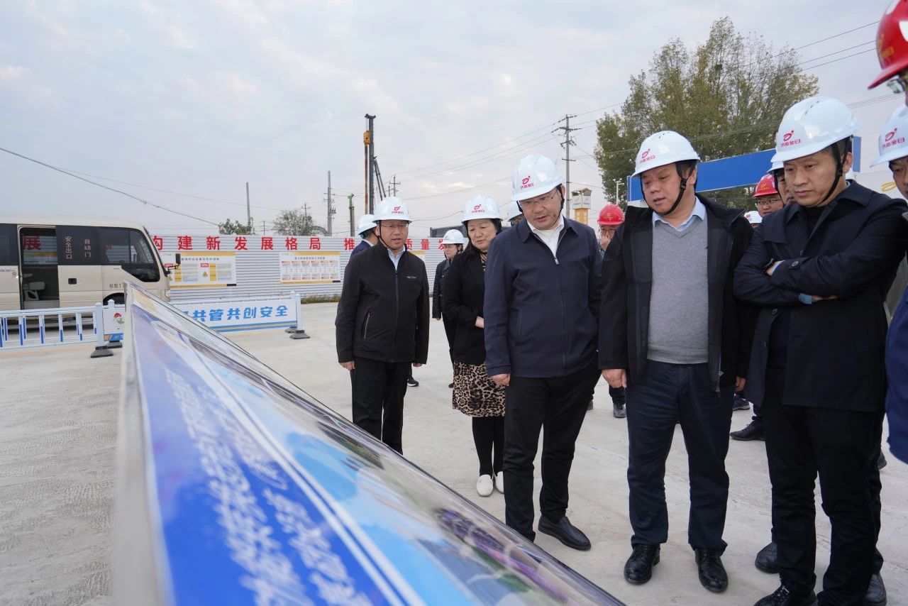 調研組一行到G104京嵐線濟南黃河公路大橋擴建工程、濟南新舊動能轉換起步區黃河體育會展及科技智造園區基礎設施(黃河大道二期)工程現場實地查看項目建設情況,就科技創新在項目管理中的應用與項目負責同志進行交流。