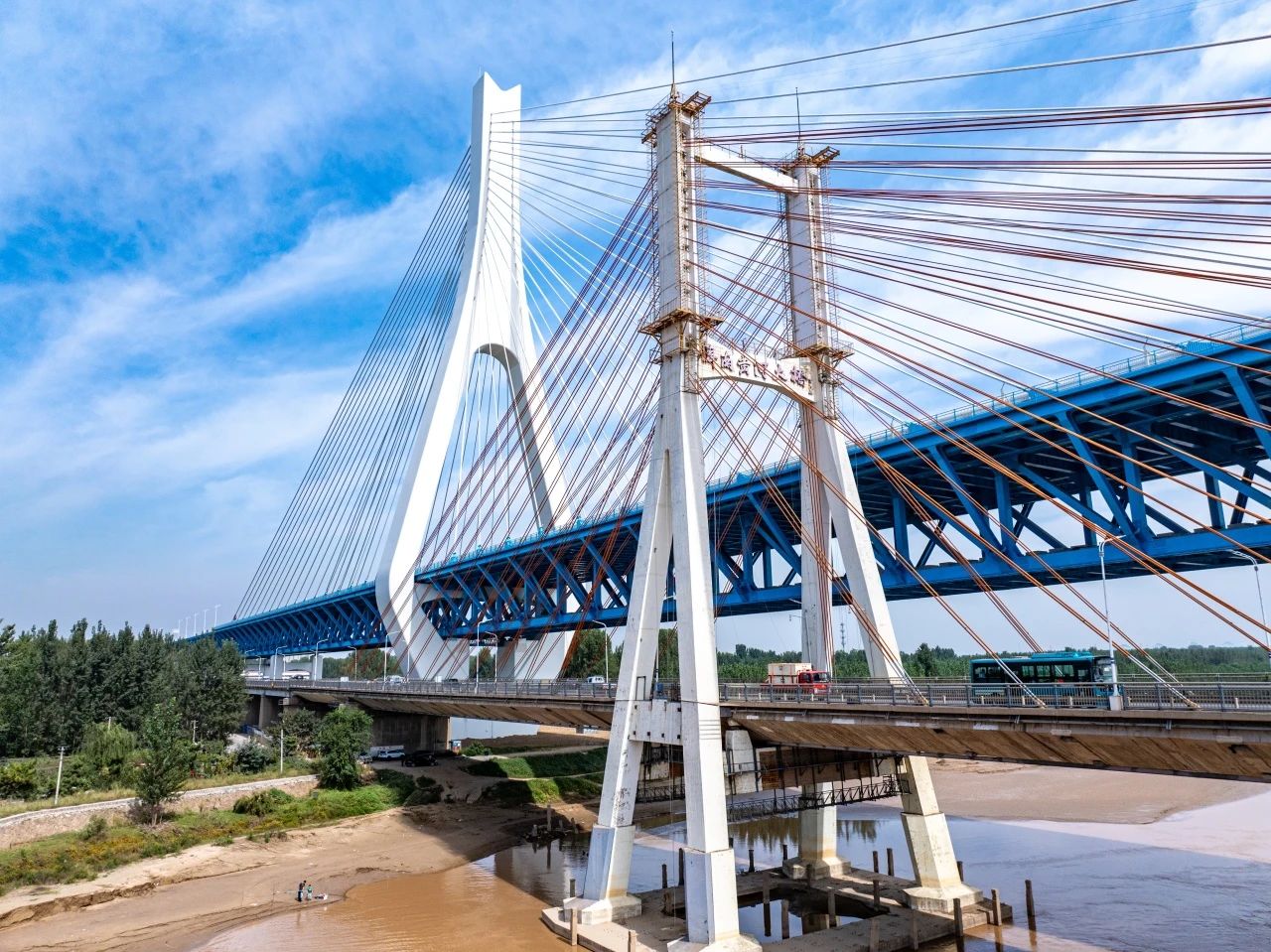 1982年7月,濟南黃河大橋(老橋)建成通車,作為當(dāng)時亞洲跨徑最大的公路斜拉橋,入選濟南“1978—1988泉城十大景觀”。如今,新橋與老橋“并肩”相望,成為黃河上第一座不等跨并橋建設(shè)工程,也是黃河上跨徑最大、鋼橋總長最長的公軌分層合建橋梁,刷新“跨黃”橋梁紀(jì)錄。